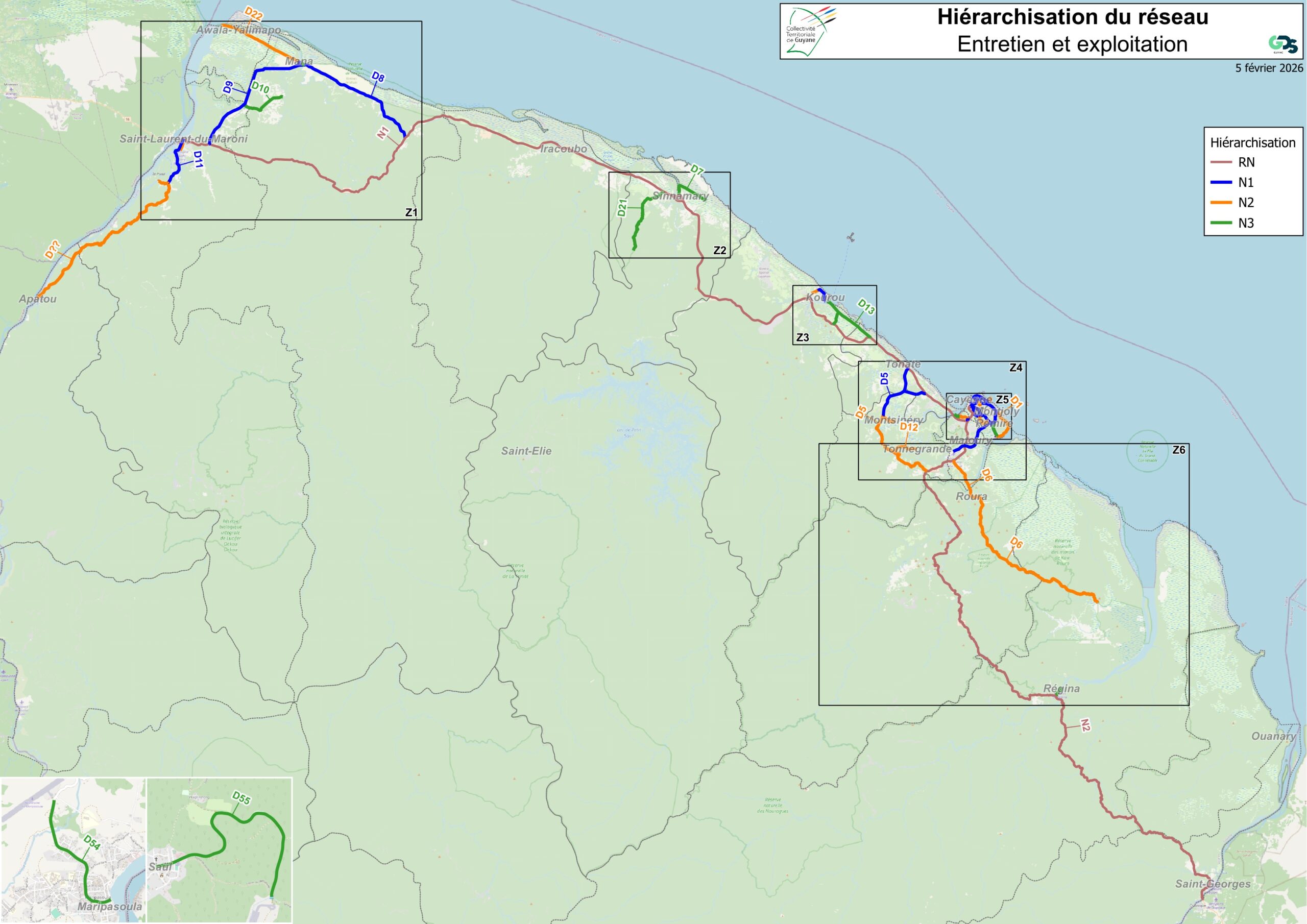 Mise en place par la CTG lors des travaux d'aménagement urbain et rétrocession à la commune à l'issu de la réception